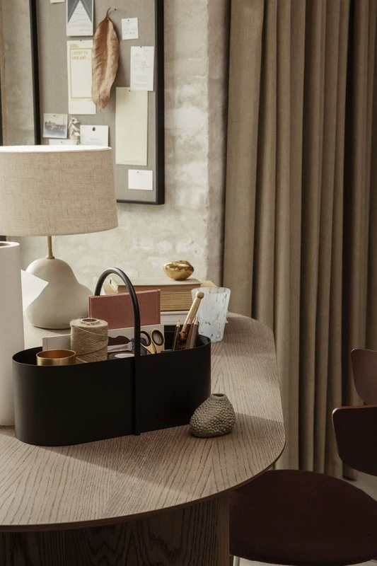 ferm LIVING’s Grib Toolbox is an elegant multipurpose storage box that charms with its gentle, soft design. Made from powder-coated metal, the container offers unlimited possibilities for storing small items and is ideal for tools, gardening supplies, cleaning items and bathroom essentials. The practical carrying handle and perforated bottom ensure an effortless and moveable solution for both indoor and outdoor needs.