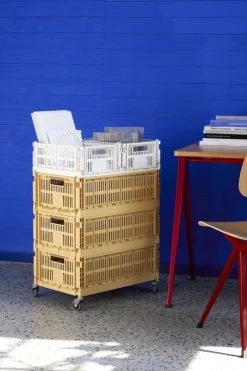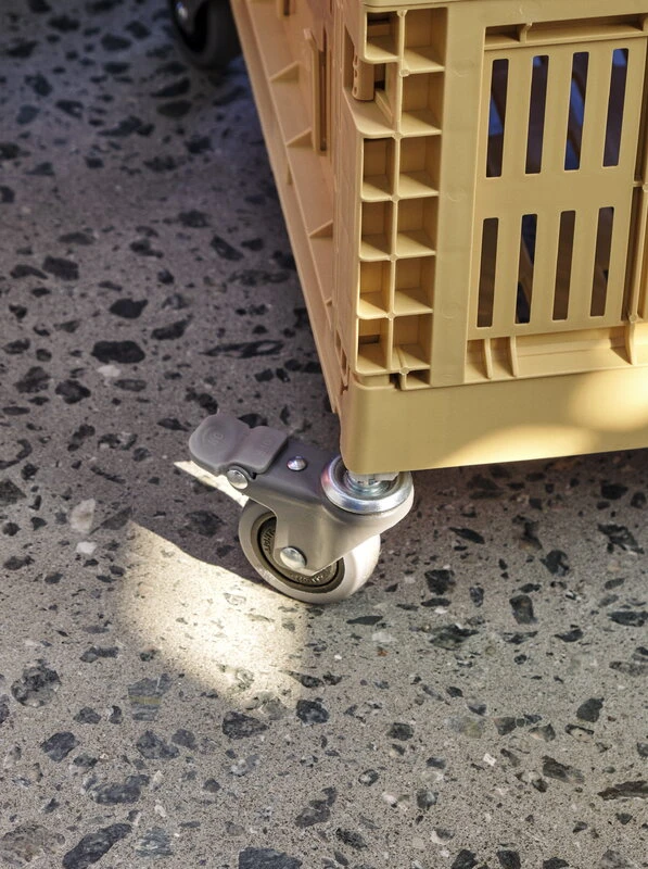 HAY’s Colour Crate wheels set transforms your Colour Crate containers into a handy mobile storage unit for your home office, bedroom, kitchen or hallway – the possibilities are endless. The wheels fit Colour Crate boxes made of recycled plastic: L size fits the large-sized box. The set includes four wheels.