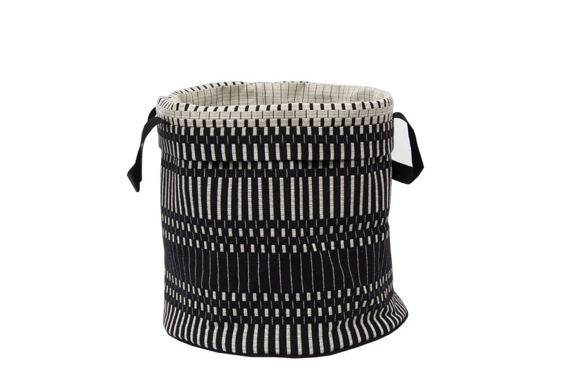 Johanna Gullichsen’s Helios fabric basket is a modern interpretation of old Finnish weaving traditions. The different sizes of Helios baskets provide an elegant storage for clothes and toys as well as accessories, bath essentials and other small items. Helios pattern is part of Johanna Gullichsen’s Normandie collection, inspired by the era of luxury ocean liners and slow, elegant way of traveling. Made of thick, double-sided cotton, the Normandie collection features various graphic patterns in Scandinavian tones, designed and woven in Finland.