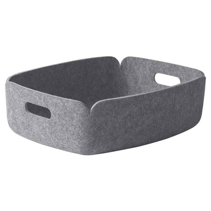 Restore, designed by Mika Tolvanen, is a collection of multifunctional trays and baskets, shaped from durable polymer felt composite. The innovative material is manufactured from the fibres of recycled bottles. Restore trays and baskets feature a simple and pleasant form that is suitable for home and office.
