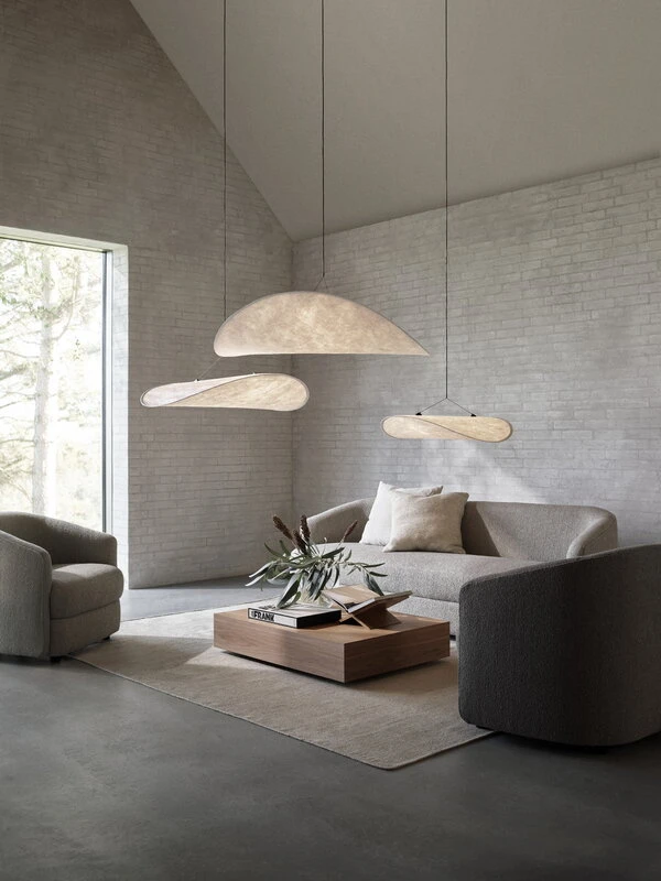 The Tense pendant light by New Works is like a cloud floating in the middle of the room, creating a soft lighting and ethereal atmosphere in any space. Designed by Panter & Tourron, Tense is made from recycled Tyvek, a material that filters light similarly to paper or a thin fabric.