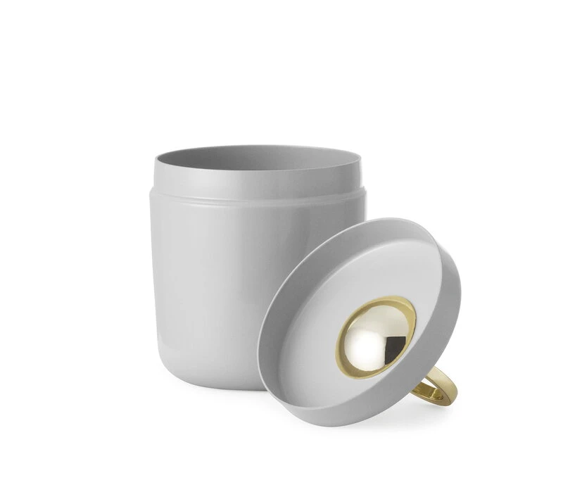 Normann Copenhagen’s Ring Box, designed by Rongrong Zhang, is a delightfully delicate jar perfect for storing your favourite pieces of jewellery in an elegant yet playful manner. The jar is named after the gold-coloured ring that adorns its lid, which also doubles as a knob for the box. In addition to jewellery, the metal box is also suitable for storing cosmetics, small office supplies or various small trinkets and treasures.
