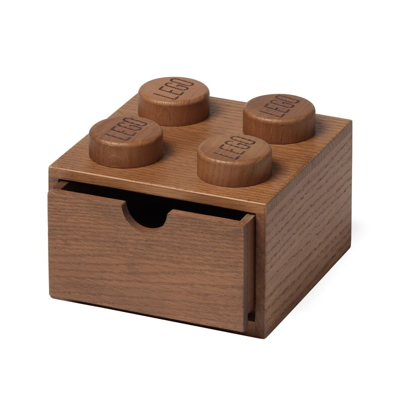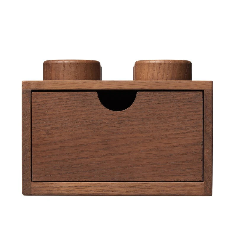 Room Copenhagen’s Lego Wooden Desk Drawers cheer up the children’s room with their playful design. The stackable storage box features a drawer that offers plenty of space for toys and other treasures in the kids’ room, or office supplies and small household items elsewhere in the home. The boxes are assembled by hand and made from dark-stained red oak – due to the natural variation in the material, each desk drawer is unique.
