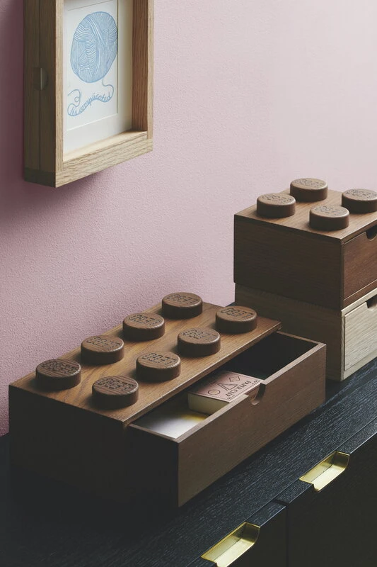 Room Copenhagen’s Lego Wooden Desk Drawers cheer up the children’s room with their playful design. The stackable storage box features a drawer that offers plenty of space for toys and other treasures in the kids’ room, or office supplies and small household items elsewhere in the home. The boxes are assembled by hand and made from dark-stained red oak – due to the natural variation in the material, each desk drawer is unique.
