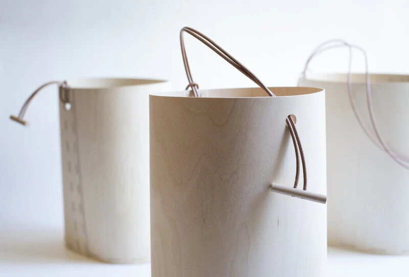 | Material | Thin veneer and birch plywood, leather, waxed yarn |