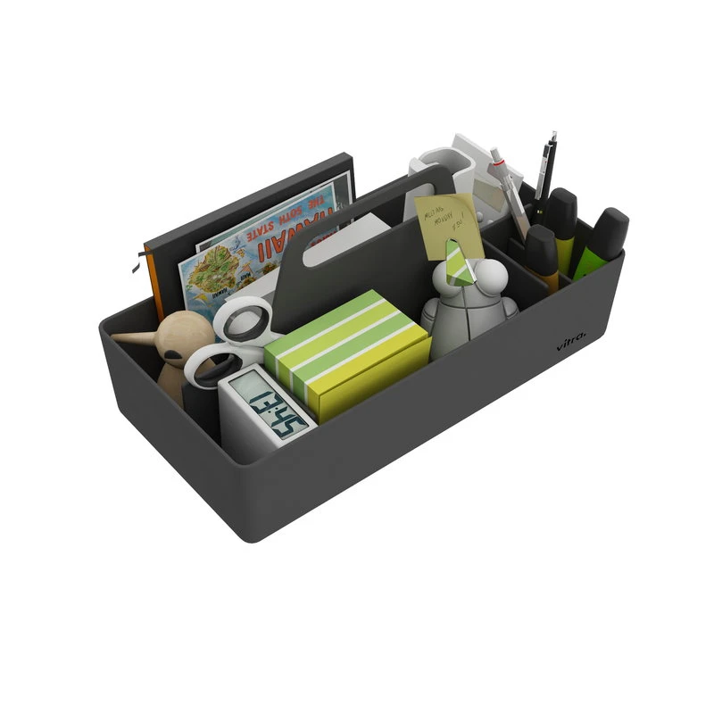 Vitra’s Toolbox is a versatile storage box for various uses. Designed by Arik Levy, Toolbox helps to organize office supplies on the desk, and it keeps small tools easily available in the garden, kitchen, garage and cabin. Made of durable ABS plastic, Toolbox has an open structure with different sizes of compartments, and the sturdy handle helps you to carry it around easily.