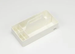Vitra’s Toolbox is a versatile storage box for various uses. Designed by Arik Levy, Toolbox helps to organize office supplies on the desk, and it keeps small tools easily available in the garden, kitchen, garage and cabin. Made of durable ABS plastic, Toolbox has an open structure with different sizes of compartments, and the sturdy handle helps you to carry it around easily.